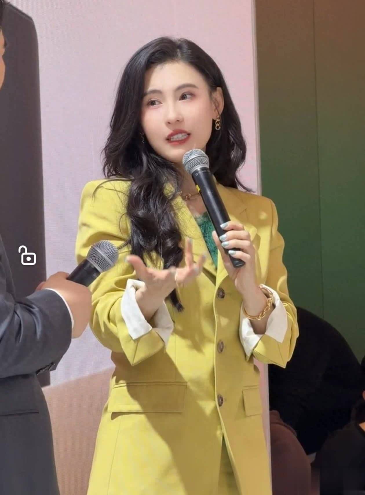 张柏芝今日参加活动,选择了一套鹅黄色西装,这颜色调得恰到好处,介于黄绿之间,仿佛把春日暖阳与嫩芽清风都穿在了身上,干净又治愈。