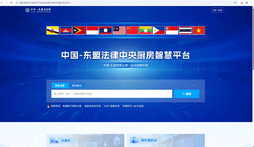 其中,“中国-东盟法律中央厨房”作为中国-东盟法学院的法律检索服务平台,东盟跨境法律信息“一站式供给中枢”,能够整合东盟十一国权威法律、裁判案例资源与学院研究成果,为师生、法律实务人员、跨境业务主体提供精准检索、智能分析、成果查阅服务,解决东盟法律信息分散、获取低效问题,助力东盟法治研究与实务决策。